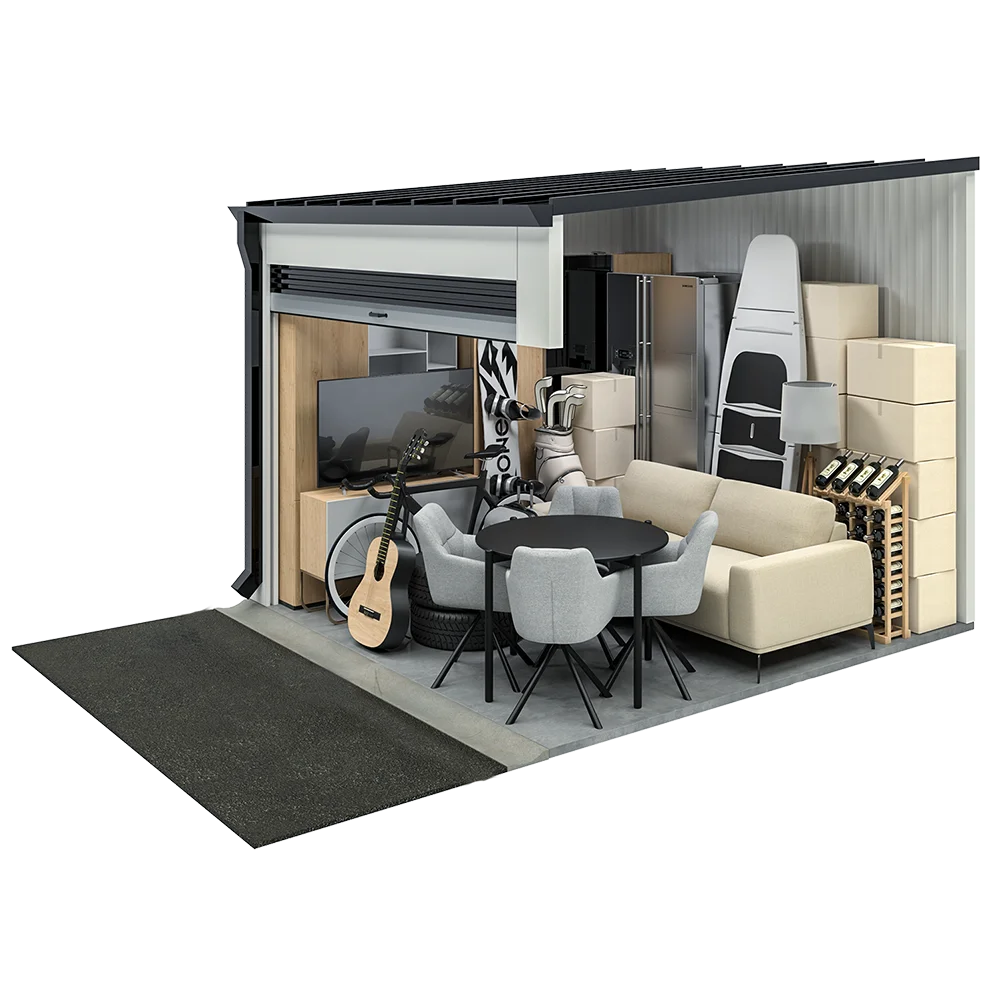 A 10×20 storage unit is around the size of a single car garage. We recommend this size for more significant self-storage needs, like freeing up space to stage your home, during a remodel or in between moves.
